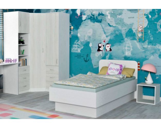 Шкаф угловой (секция с ящиками) Совушки (Белый/корпус Выбеленное дерево)