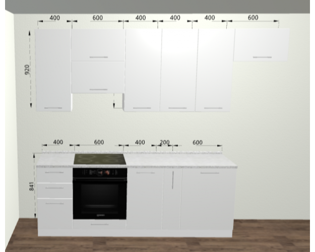 Размер: Ширина: 2800 мм, Высота: 2336 мм. Глубина 600 мм (со столешницей)