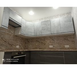Размер кухни: ширина 1800 мм, высота 2100 мм (Складывается из высоты нижних, верхних модулей и высоты стандартного фартука 600 мм), глубина по столешнице 600 мм