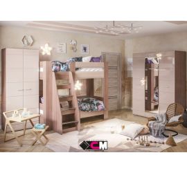 МС Молодежная "Юкки" дуб делано / белый состоит из 12 модулей: